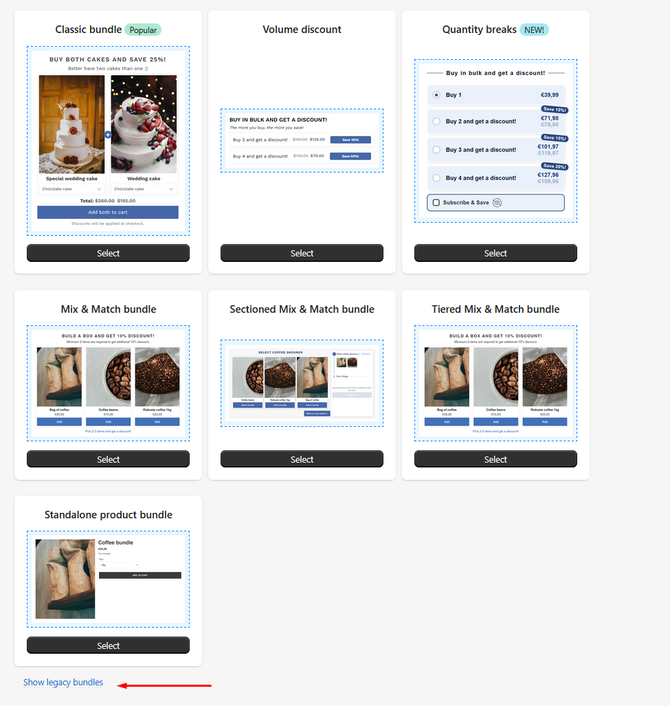 The Legacy bundles can be created by going to: Bundler > Create bundle > Show legacy bundles.